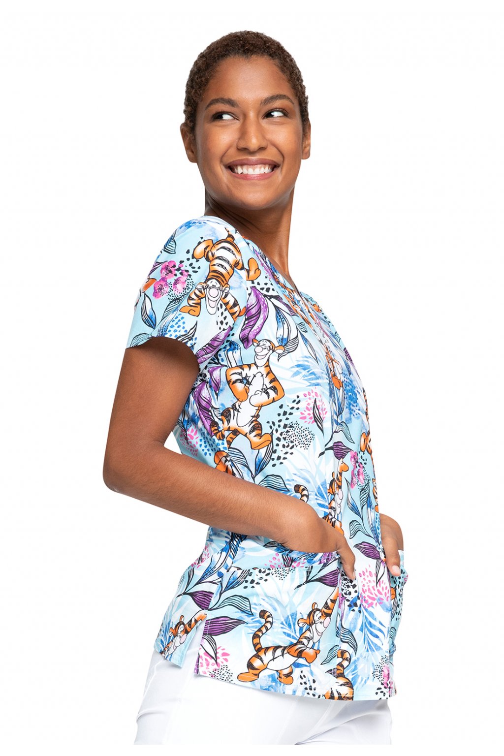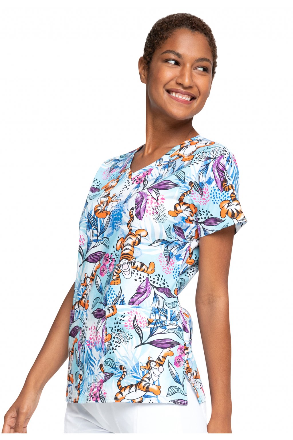Zdravotnická dámská halenka Disney s veselým potiskem tygra z pohádky Medvídek Pú. Halenka má zeštíhlující střih, mírně zaoblený výstřih do V, dvě boční kapsy a rozparky. Zdravotnická halena TF638 PHPG je vhodná pro dětské lékaře, zdravotní sestry a personál mateřských škol.