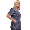 Dámská elegantní pracovní halenka s pestrobarevným potiskem srdíček na grafitovém strukturovaném pozadí. Halenka má mírně zaoblený výstřih do "V", projmutý zeštíhlující střih, dvě kapsy a boční rozparky. Příměs elastanu v tkanině poskytuje halence příjemnou pružnost při práci.