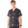 Zdravotnická pánská pracovní halenka s potiskem z antibakteriálního materiálu s úpravou SILVER PRO, která omezuje množení a růst mikroorganismů a snižuje riziko nákazy. Halena má výstřih do V, tři kapsy a boční rozparky.